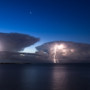 Après une nuit exceptionnelle, les orages ont perduré jusqu’au lever de soleil sur la Baie de Cannes. Un intéressant dégradé de couleur s’est mise en place. Entre étoiles, foudres, nuages et mer, cette photographie est particulièrement riche.